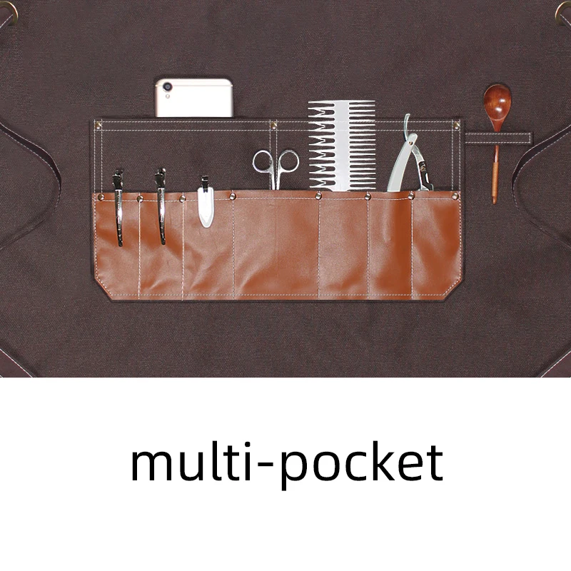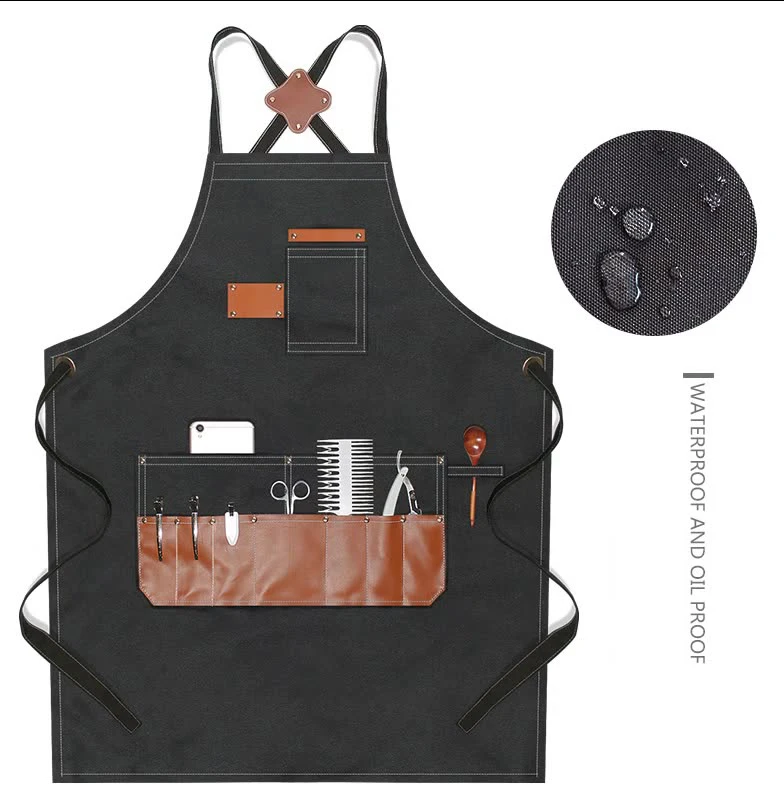 Confeccionado em tecido resistente e impermeável, com acabamentos em couro sintético de alta qualidade, este avental oferece proteção contra cabelos, produtos químicos e respingos, mantendo um visual sofisticado e moderno.