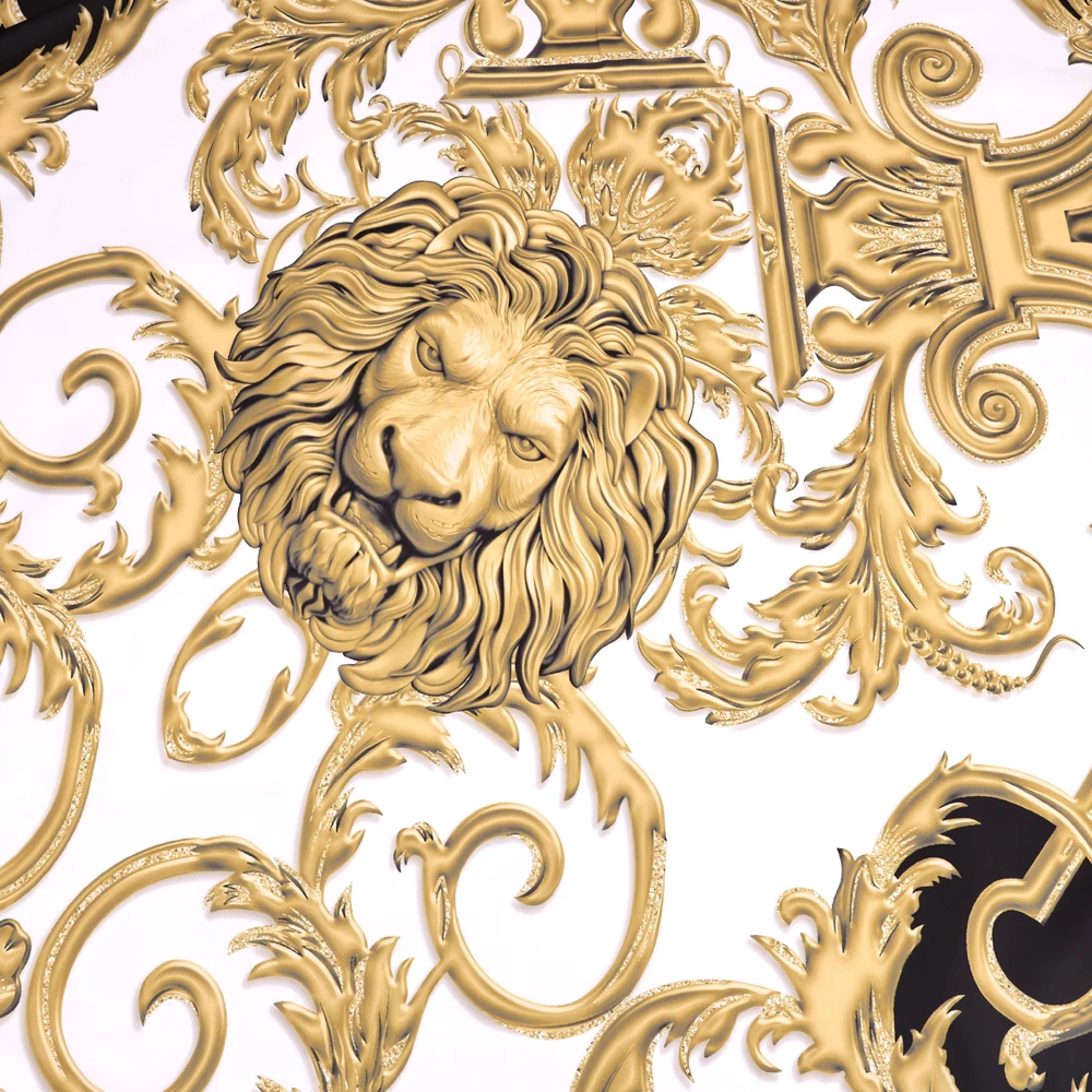 Design: Estampa dourada de luxo com detalhes em preto e branco