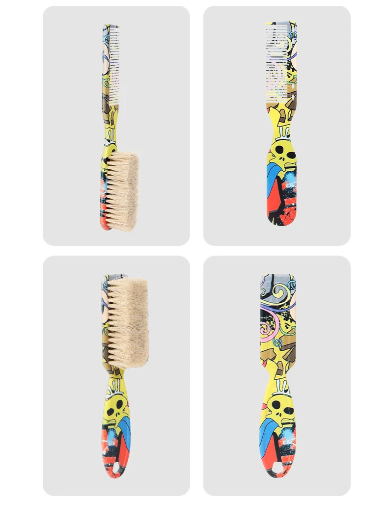 Com um design exclusivo em estilo grafite urbano, cada peça é única e cheia de atitude, transformando o visual da sua bancada. As cerdas macias e resistentes proporcionam um penteado suave, evitando danos aos fios e garantindo um acabamento perfeito.