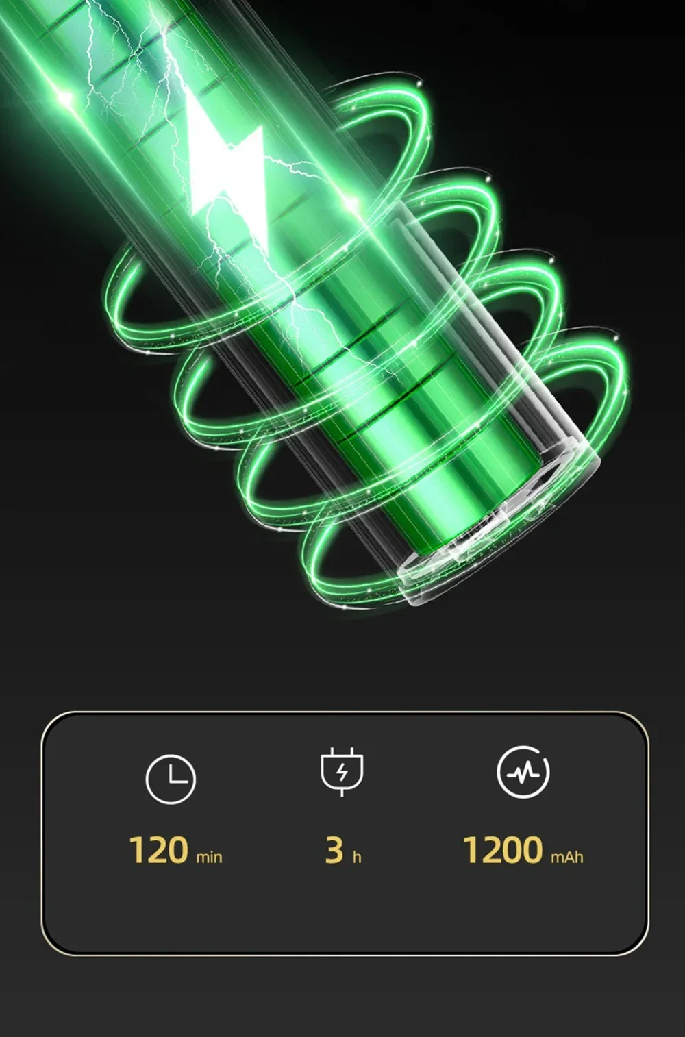 O indicador de LED azul mostra o nível de carga da bateria com estilo e tecnologia, garantindo total controle durante o uso. Com bateria de longa duração e carregamento rápido via USB, ela é perfeita tanto para uso profissional quanto doméstico.